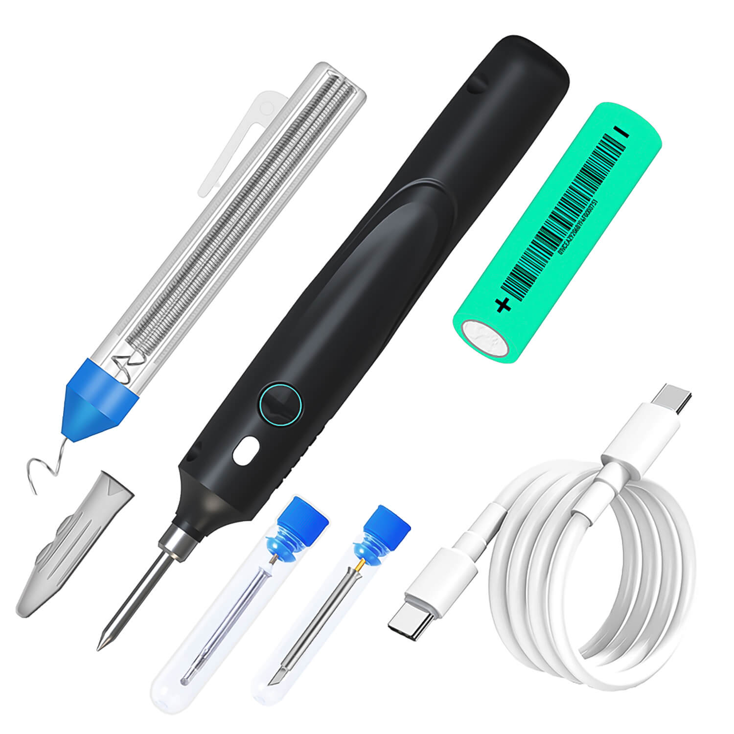 Паяльник не работает с батареями, вам нужно купить его самостоятельно. Модель: аккумуляторная батарея 18650, емкость должна быть более 2000 для привода