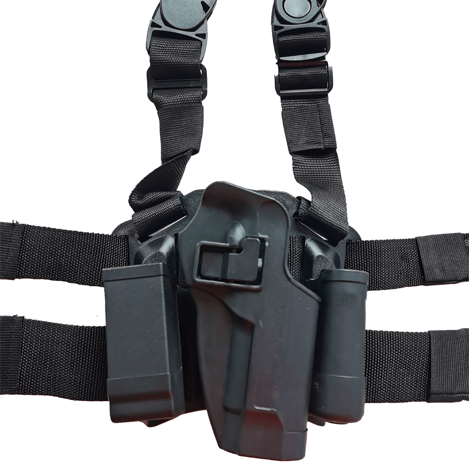 - Особенностирегулируемая пряжка, эластичная лента, съемная крышка магазина, пряжка с двойным звеном, крепления для фонарика; винты на задней панели можно свободно демонтировать, удобно и быстро