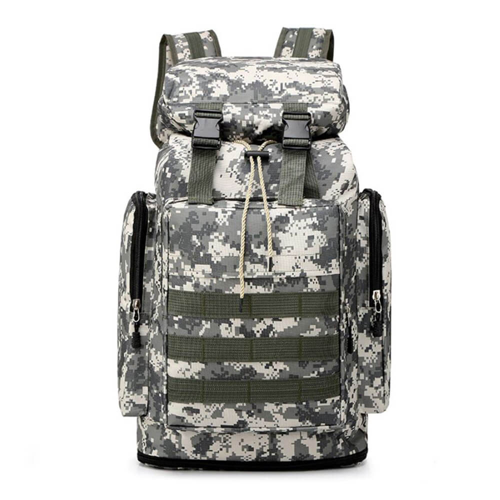 Рюкзак-трансформер тактический Mountop 70 L cami подойдет для походов, туризма, скалолазания, военных целей. Качественная сумка имеет несколько отсеков на молнии. Самый большой отсек на 70 литров вмещает все необходимое снаряжение. Есть небольшие карманы для мелочей, бутылок с водой. Армейский рюкзак трансформер выполнен из качественного нейлона с полиэстерной подкладкой, который не боится влаги, снега, легко очищается от загрязнений и не выцветает на солнце. Военный рюкзак с подсумками рассчитан на максимальную нагрузку до 10 кг. Он оснащен широкими лямками для плеч и пояса, которые позволяют равномерно распределить вес по телу.